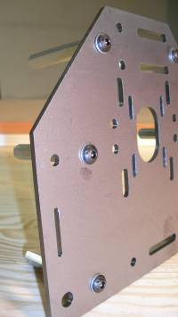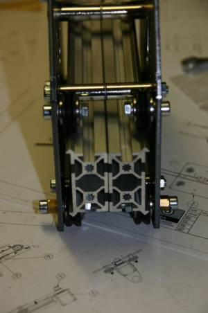 Die Abstandrollen in der originalen Bauanleitung haben zöllige Maße. Dieses sind die üblichen Maße unserer Kollegen in Übersee. Bei uns in Europa ist alles in mm genormt. Daher habe ich auch durchgängig den Bausatz und die Einzelteile auf mm umgestellt. So sind die Excenter-Muttern auch 6 mm lang und nicht 6,35 mm. Statt der Abstandsrollen verwende ich in meinen Bausätzen Distanzbolzen mit genau 53 mm Länge und beidseitigen M5-Innengewinden. Das ist aus meiner Sicht viel weniger gefummel und die beiden Platten können auch einzeln jeweils mit 6St. M5x10 an- und abgeschraubt werden.