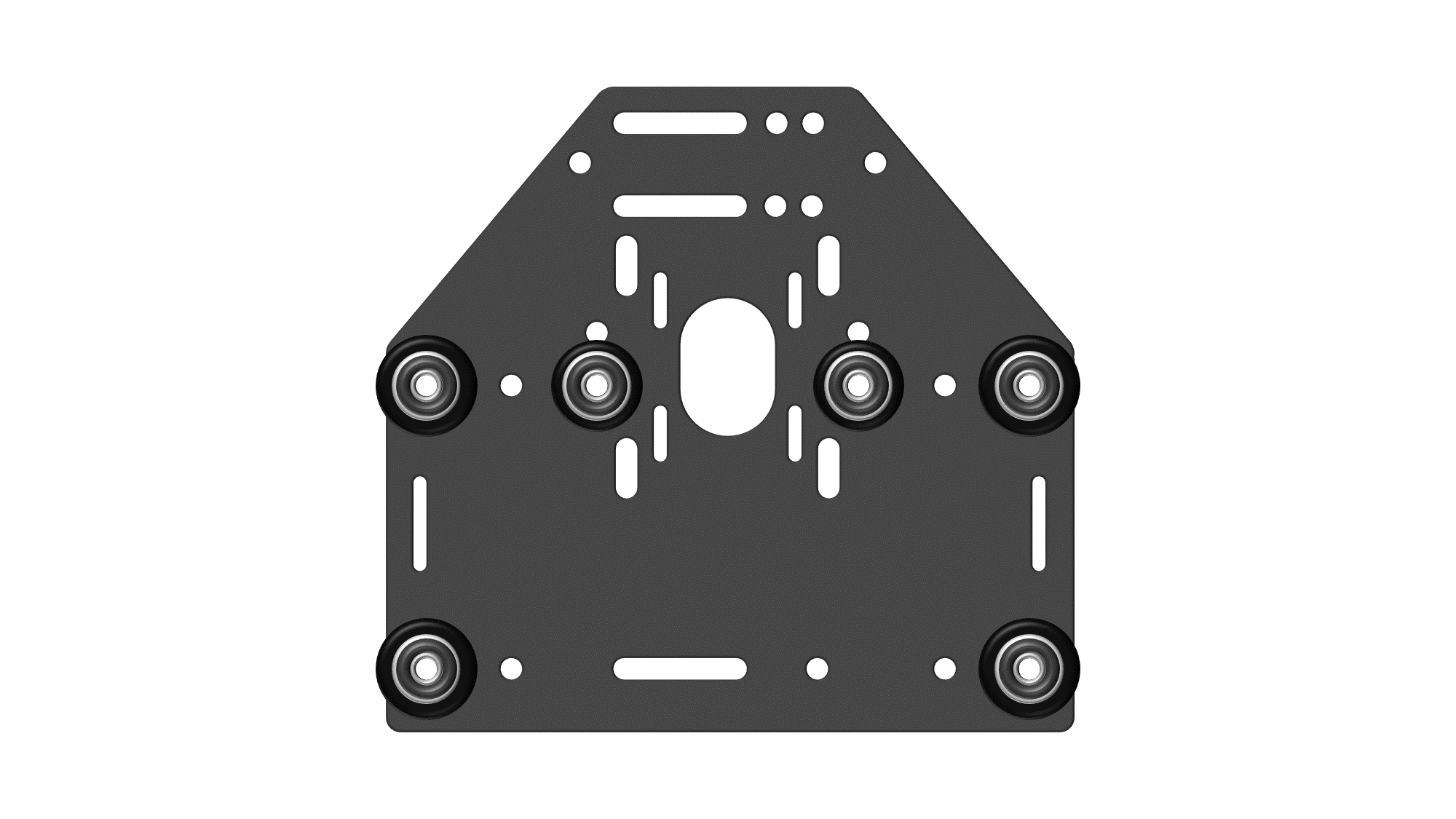 Die Motorplatten sind nicht ganz symmetrisch. In der Spitze ist eine Aussparung mit zwei Schlitzen und vier Löchern. Bei der Z-Achse ist deren Orientierung nicht von Belang, wohl aber bei der X-Achse. Dort müssen die Platte so ausgerichtet sein, das die Löcher übereinander liegen. Deshalb habe ich die Z-Achse genauso aufgebaut. Im nachfolgenden Bild sind die beiden Motorplatten mit den Lagern dargestellt.