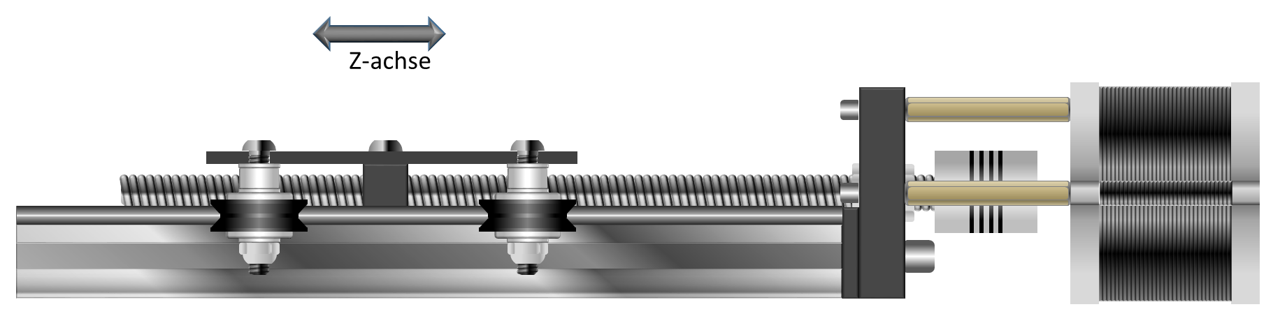 Der fertige Aufbau des Z-Achsenschlittens sieht dann so aus: