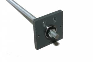 Als erstes wird das Kugellader mit den zwei flachen M8 Muttern, wie gezeigt, auf der Gewindestange festgeschraubt. Der Abstand zwischen Gewindeende und der oberen Mutter sollte ca. 12 mm betragen. Dabei werden die Muttern gegeneinender verschraubt (gekontert). Die Mutter müssen vorsichtig aber sehr fest zusammengeschraubt werden. Wenn sie nicht fest genug gekontert werden, neigt die Gewindestange später stärker zu eiern (taumeln).